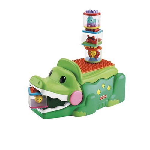 This friendly crocodile is a baby building center for early stacking this cute alligators folded tail has a bumpy surface that aids baby in stacking the 4 new Peek-a-Blocks Builders blocks on - and it rewards baby with musical responses When the tail is flipped open another surface to organize bl Read More..